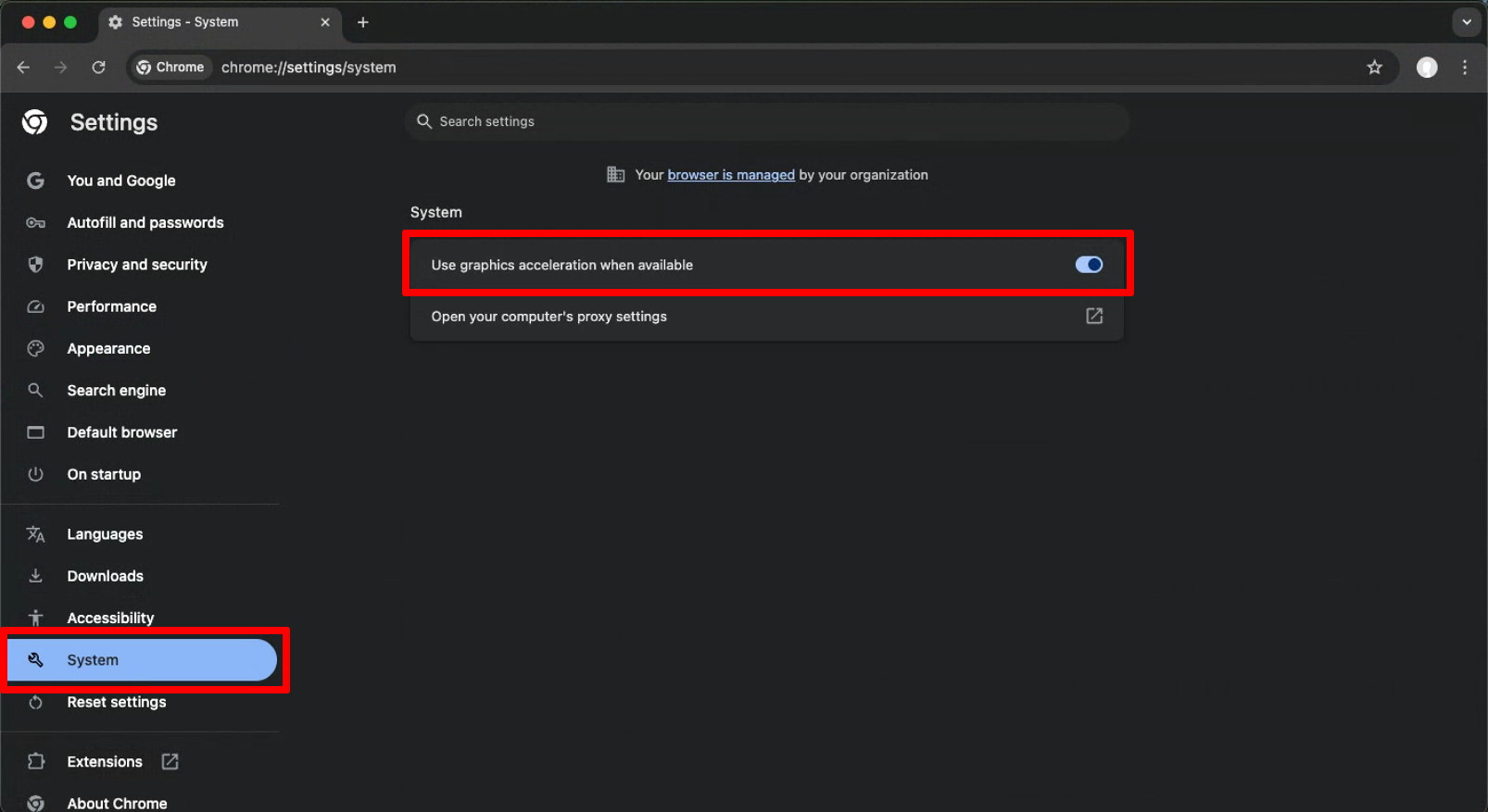 - Click System in the left sidebar.