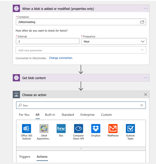 Transfer your media files from Azure Blob with Azure Logic Apps, automating your workflows without writing a single line of code.