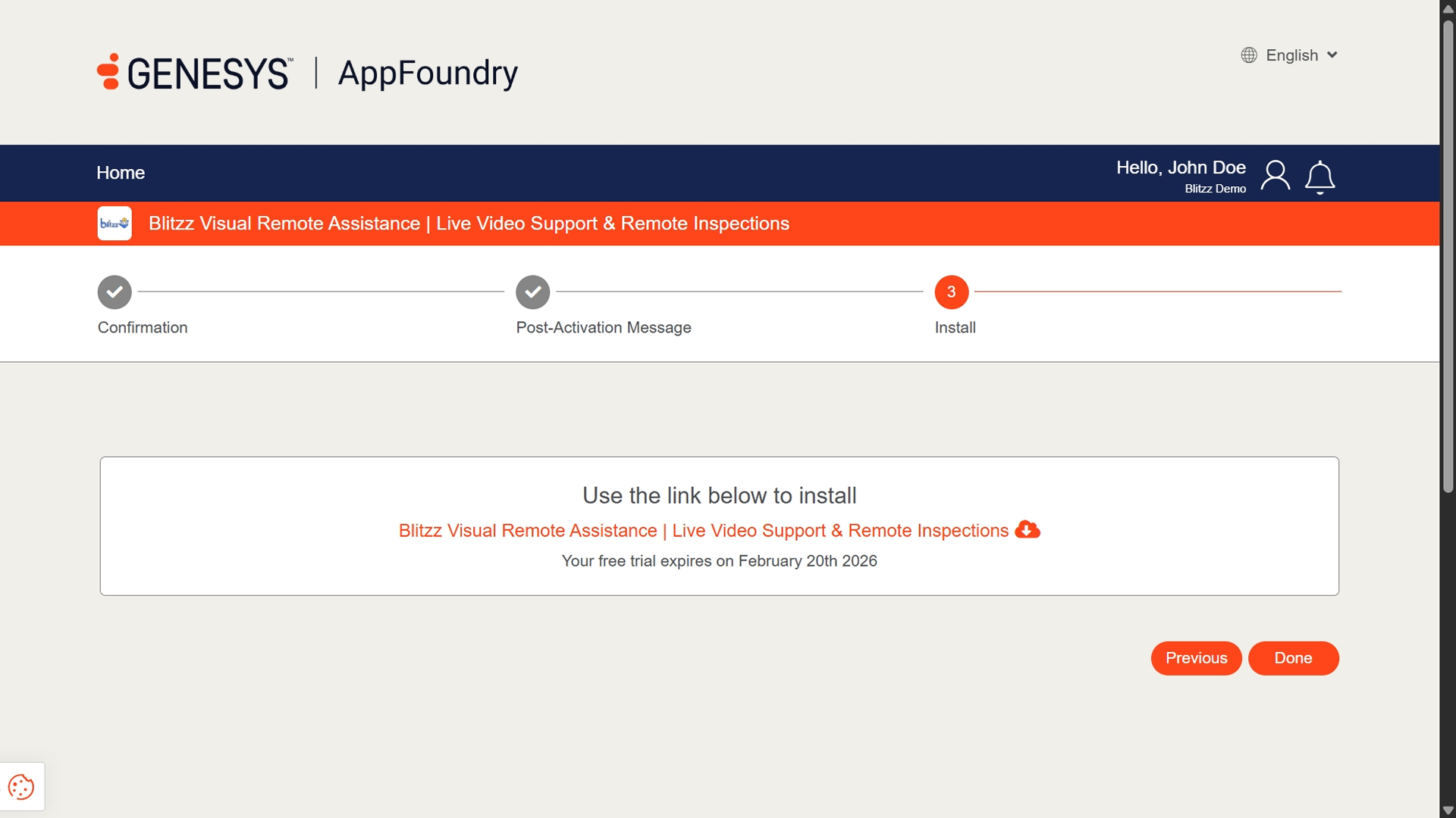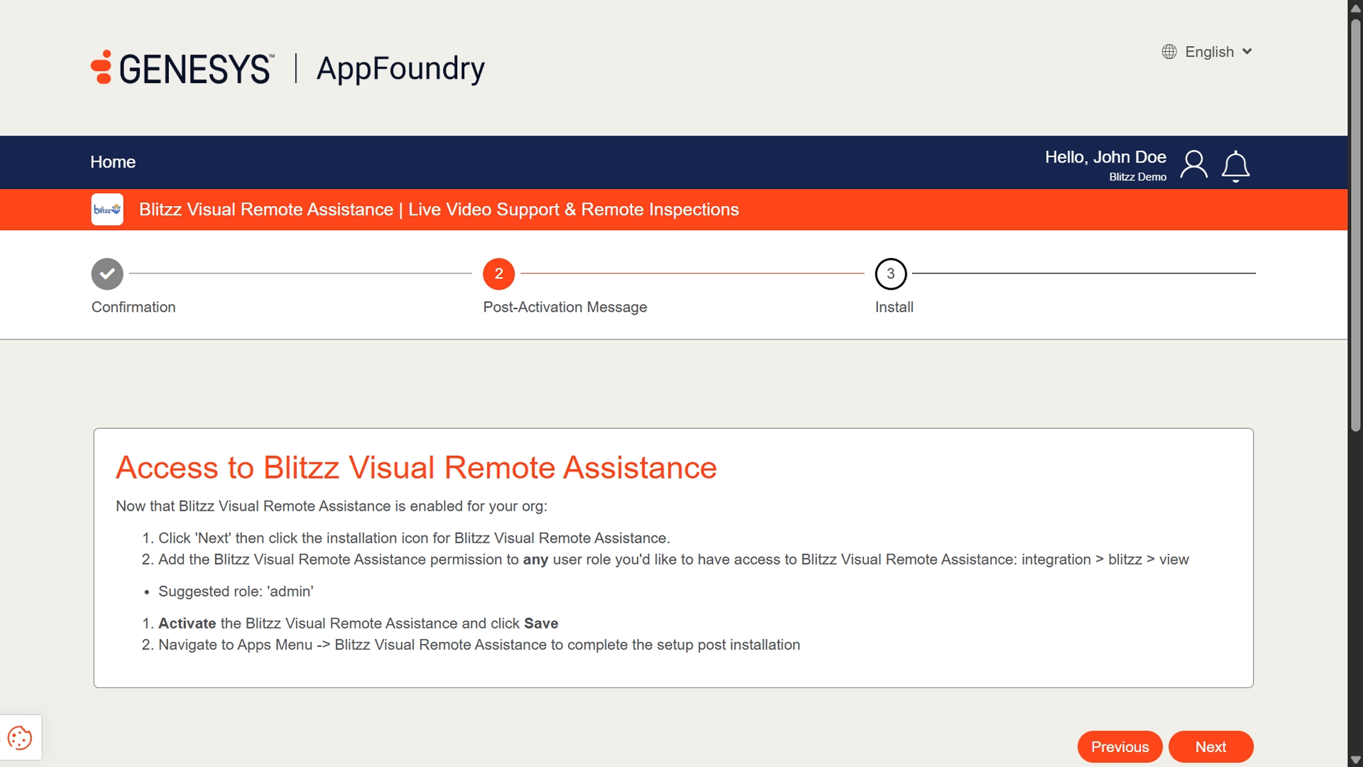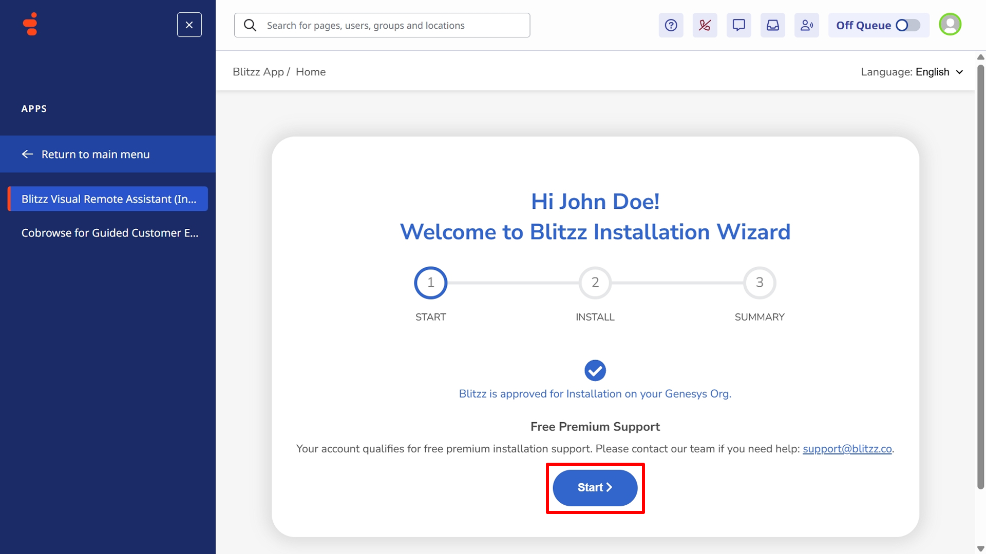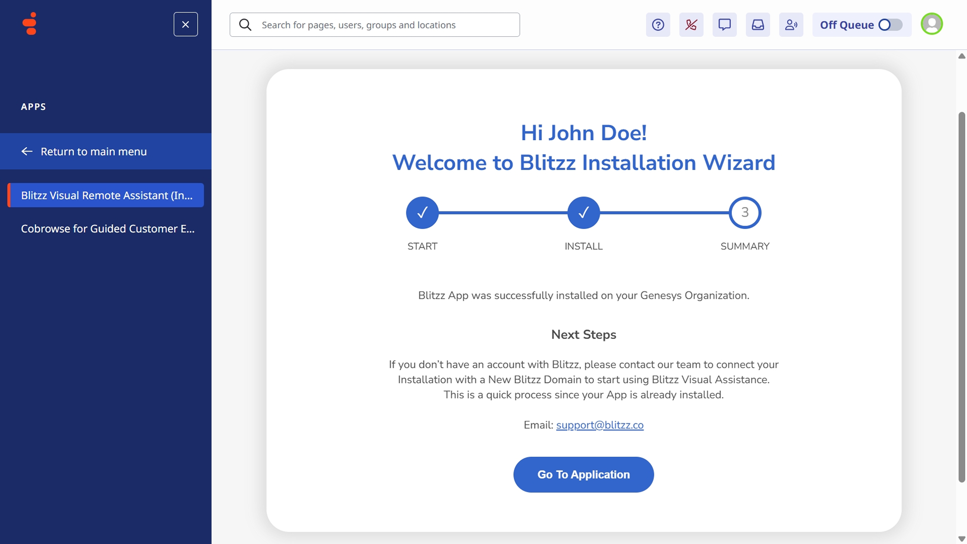 Blitzz Visual Remote Assistance enables Genesys Cloud agents to seamlessly initiate live video support sessions with customers directly from their workspace. This guide walks you through the complete installation and configuration process.