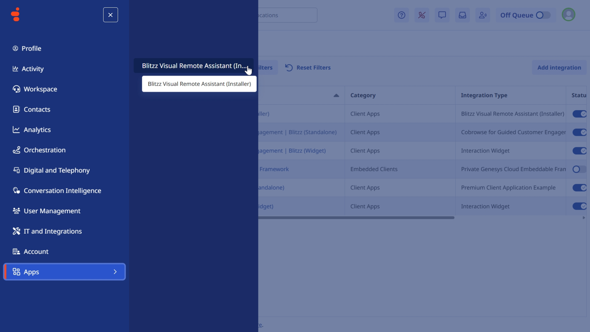 - Navigate to Apps in the Genesys Cloud top navigation.