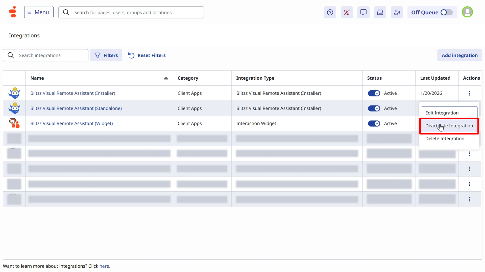 - In Genesys Cloud, navigate to Admin → Integrations.