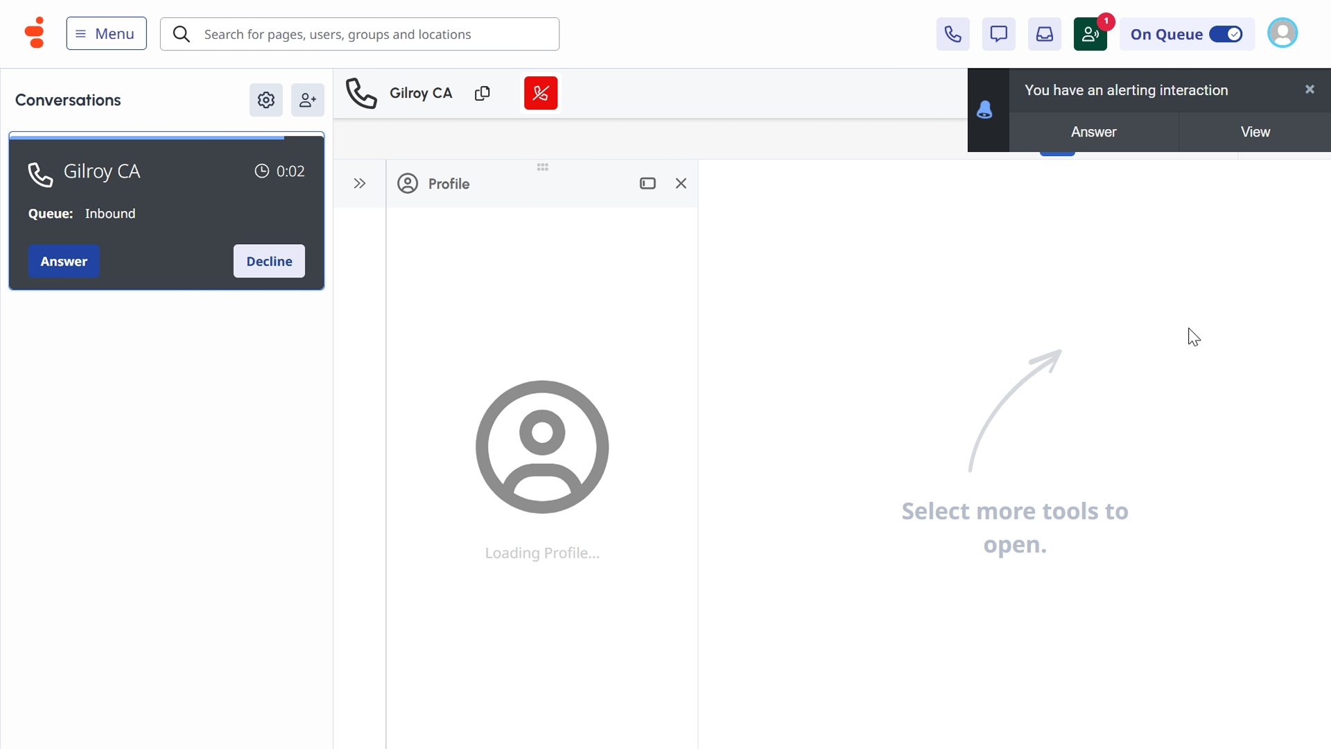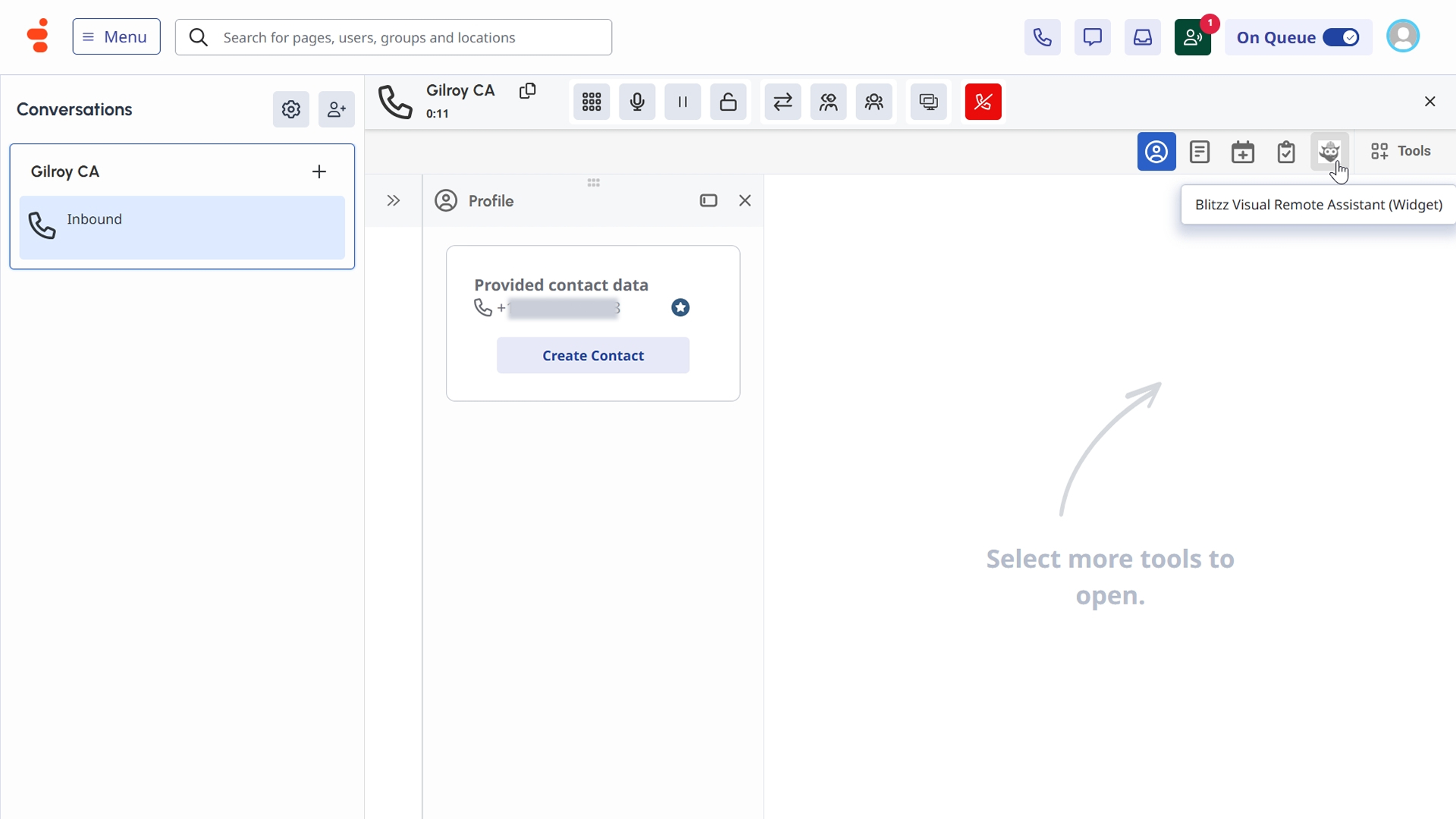 When an inbound call is received, Look for the Blitzz icon in the interaction panel on the right side. The widget displays customer information pulled from the interaction.