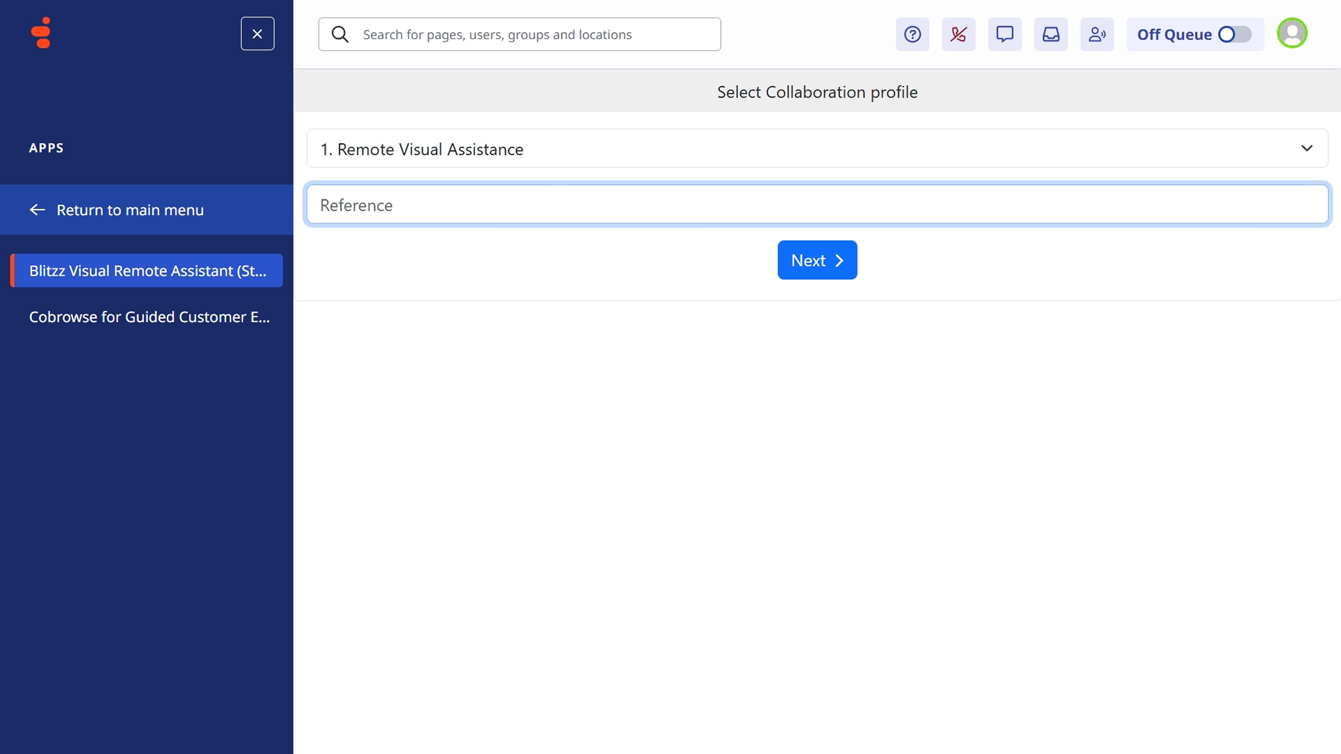- Click Blitzz Visual Remote Assistance (Standalone).