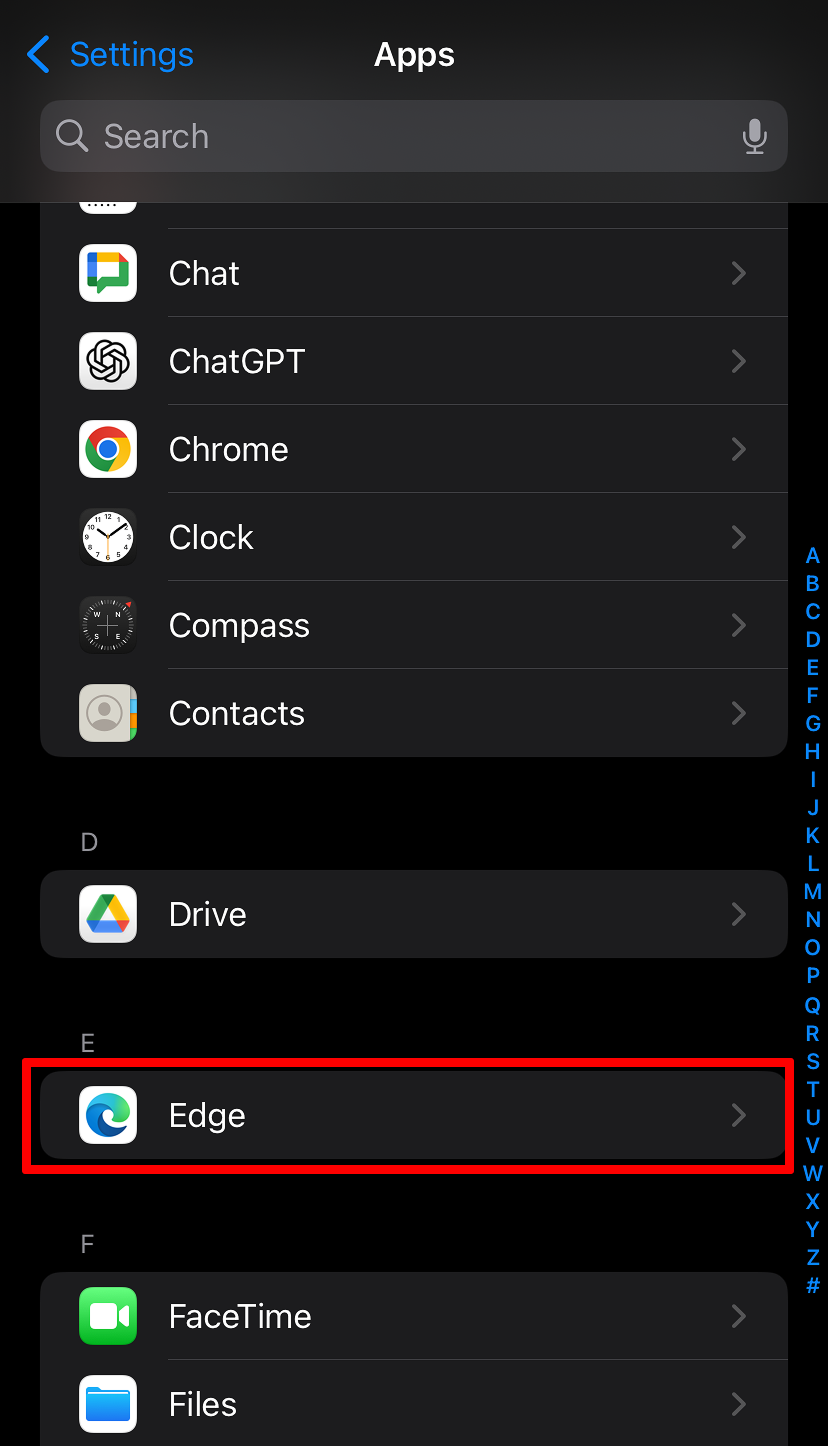 Step 1: Open Settings App, Scroll down and tap “Edge”.