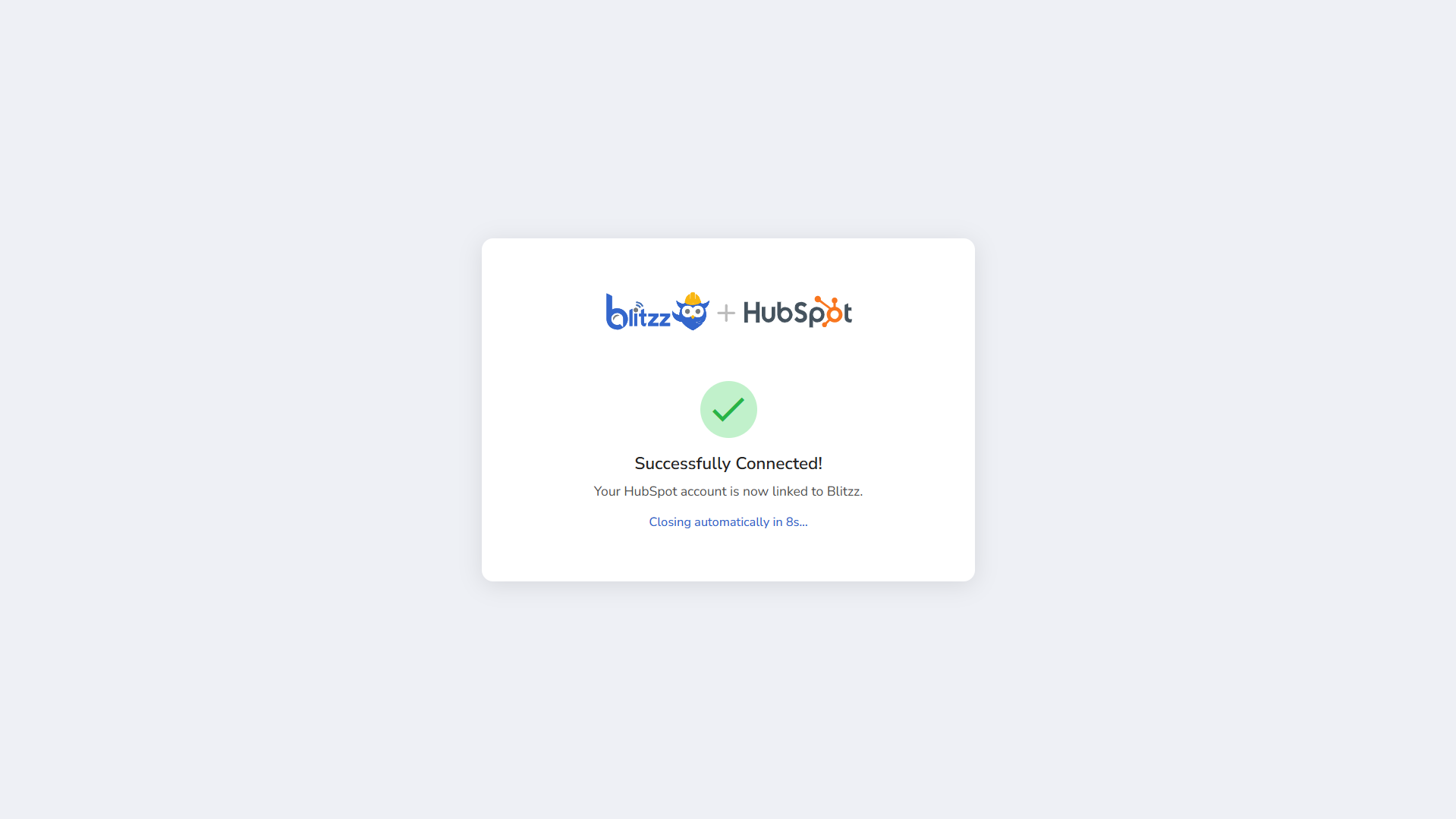 Once connected successfully, you will see the message “Successfully Connected!” confirming that your HubSpot account is linked with Blitzz.