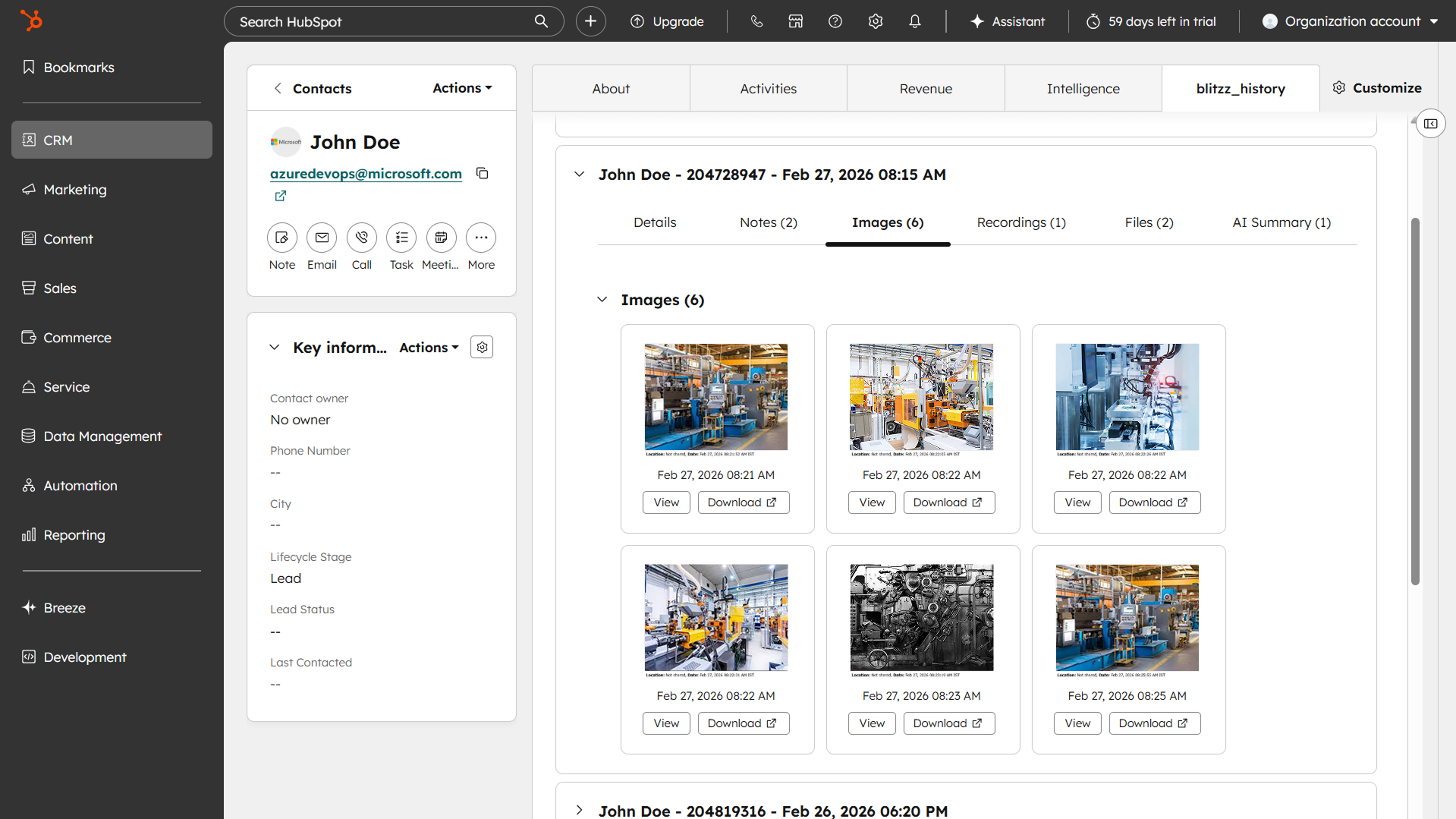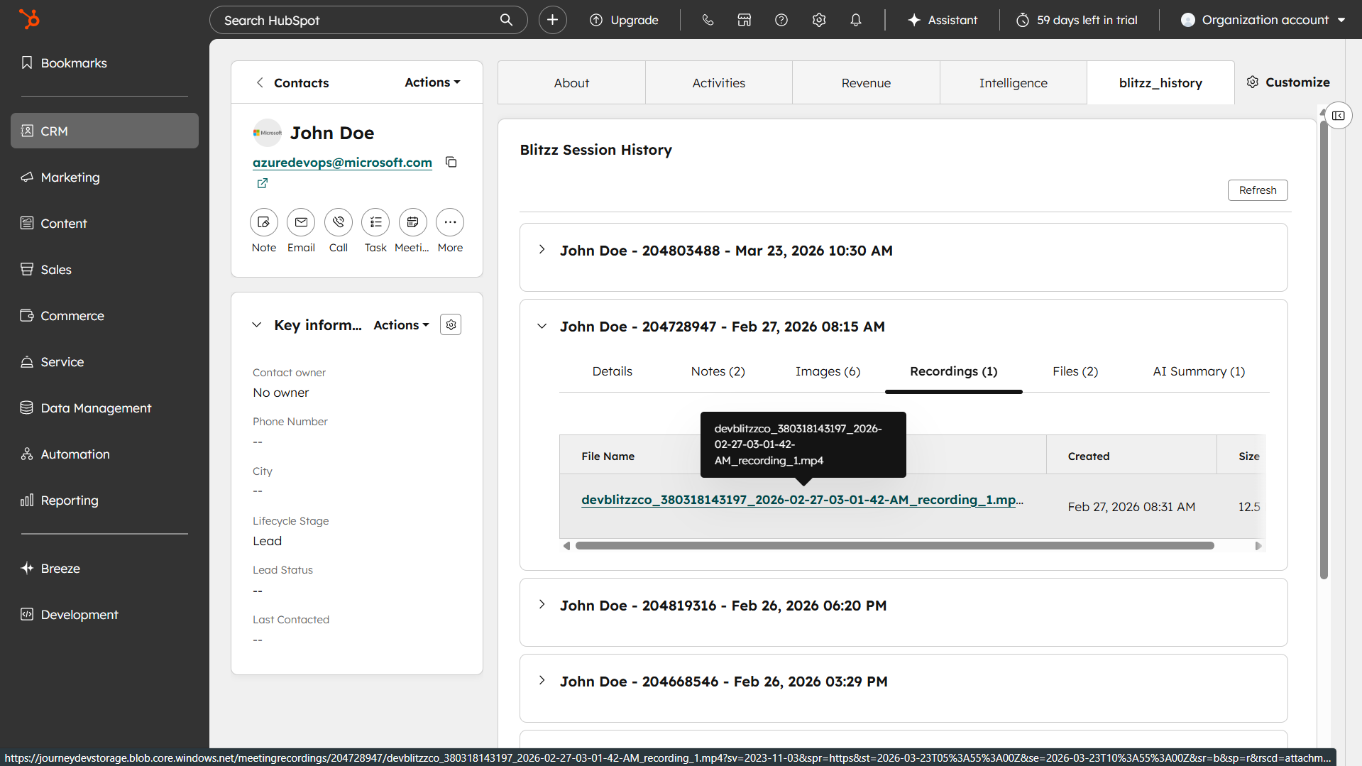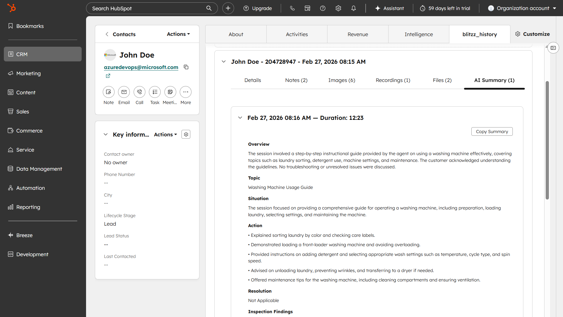 After a Blitzz session is completed, all session details are automatically saved and accessible directly within the contact's record in HubSpot via the blitzz_history tab.